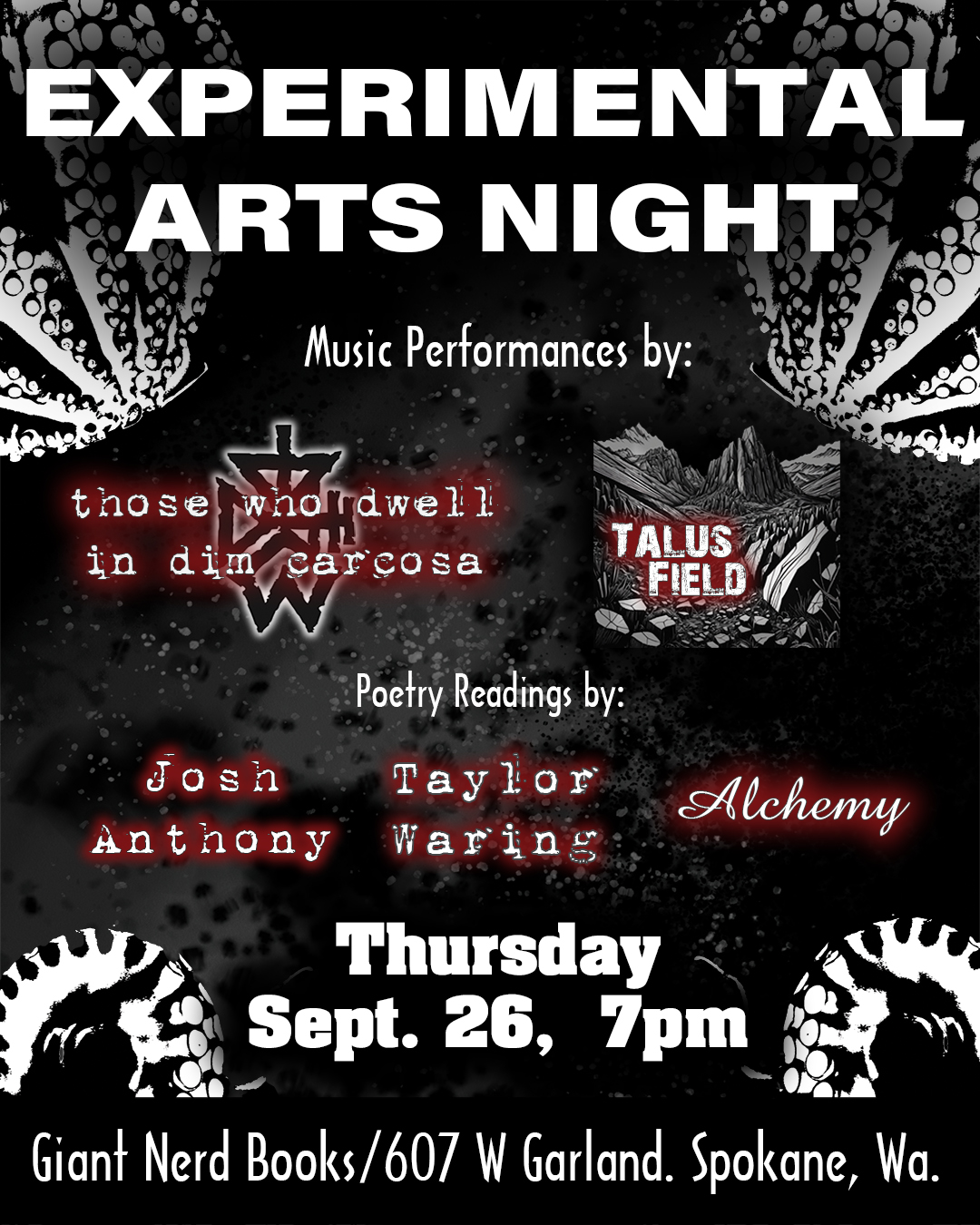 My first Talus Field performance occurred on 9/26/24 for Experimental Arts Nights at Giant Nerd Books in Spokane, Washington. Here’s the recording.